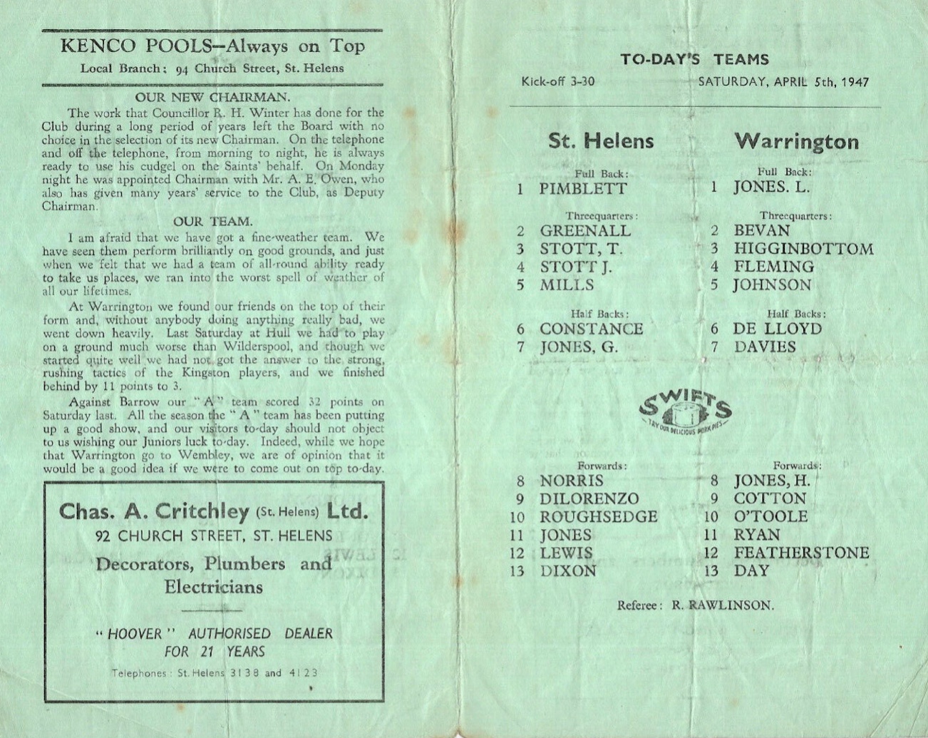COACH : Oliver Dolan![]() (1946-08-31 : 1947-06-07 ) |