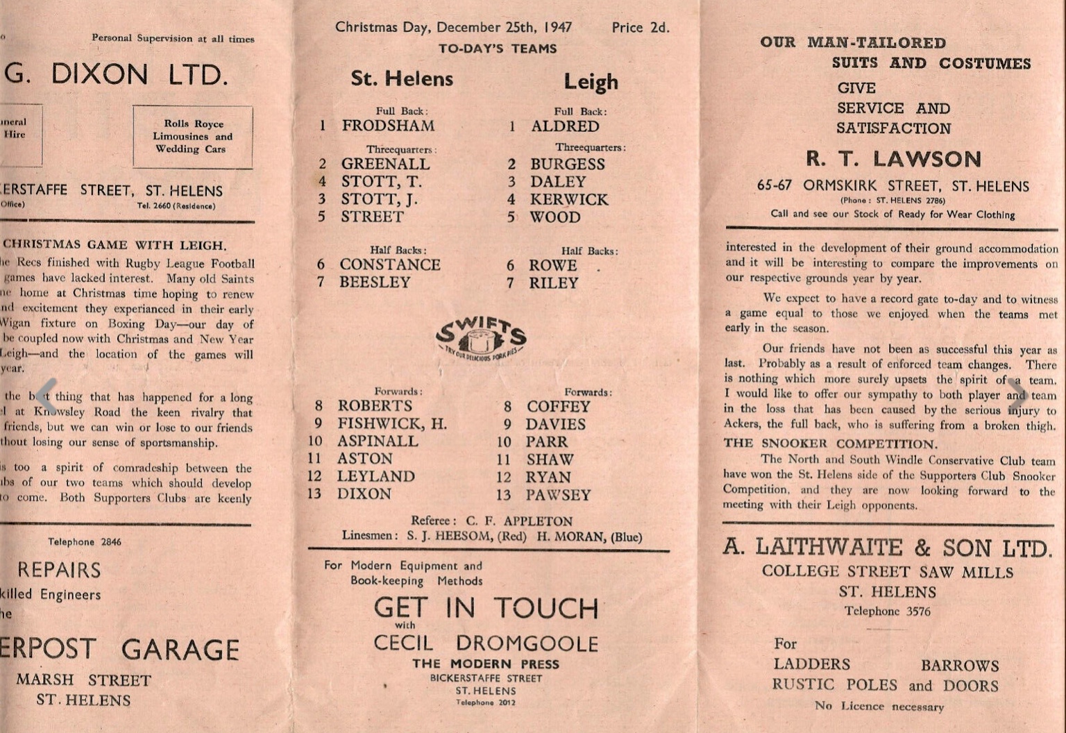 COACH : Alf Frodsham![]() (1947-08-23 : 1949-04-25 ) |