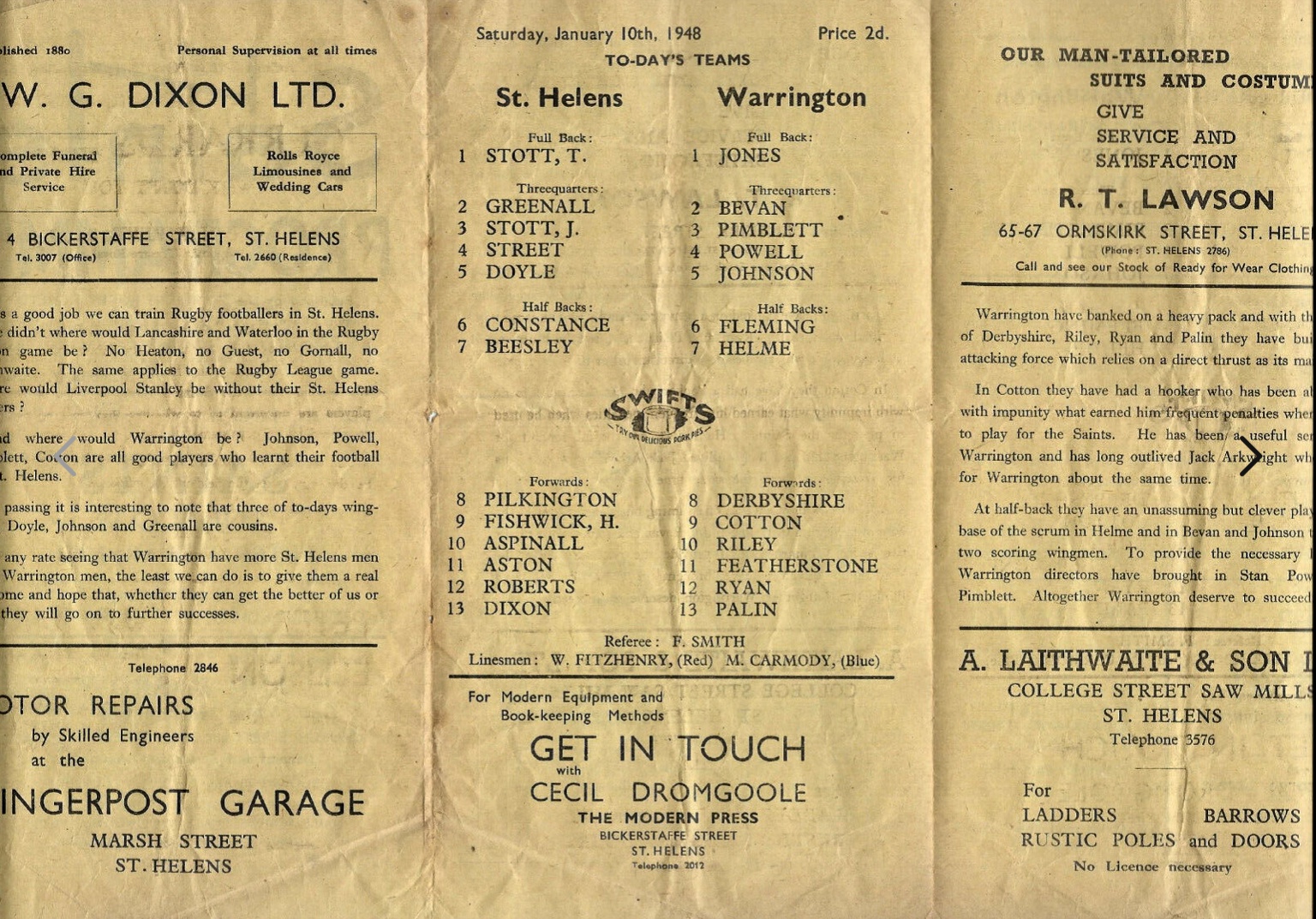 COACH : Alf Frodsham![]() (1947-08-23 : 1949-04-25 ) |