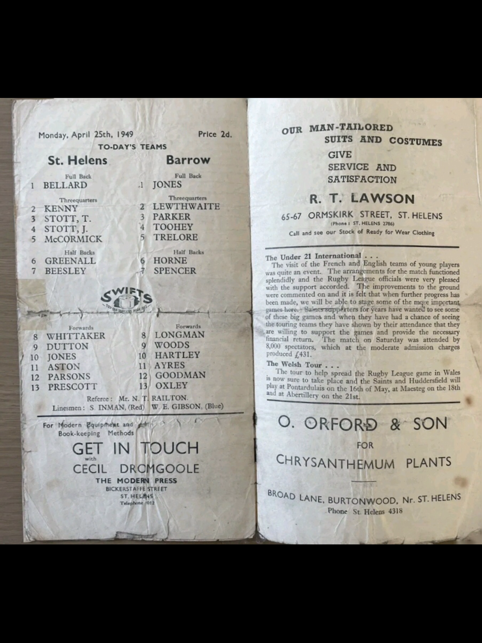 COACH : Alf Frodsham![]() (1947-08-23 : 1949-04-25 ) |