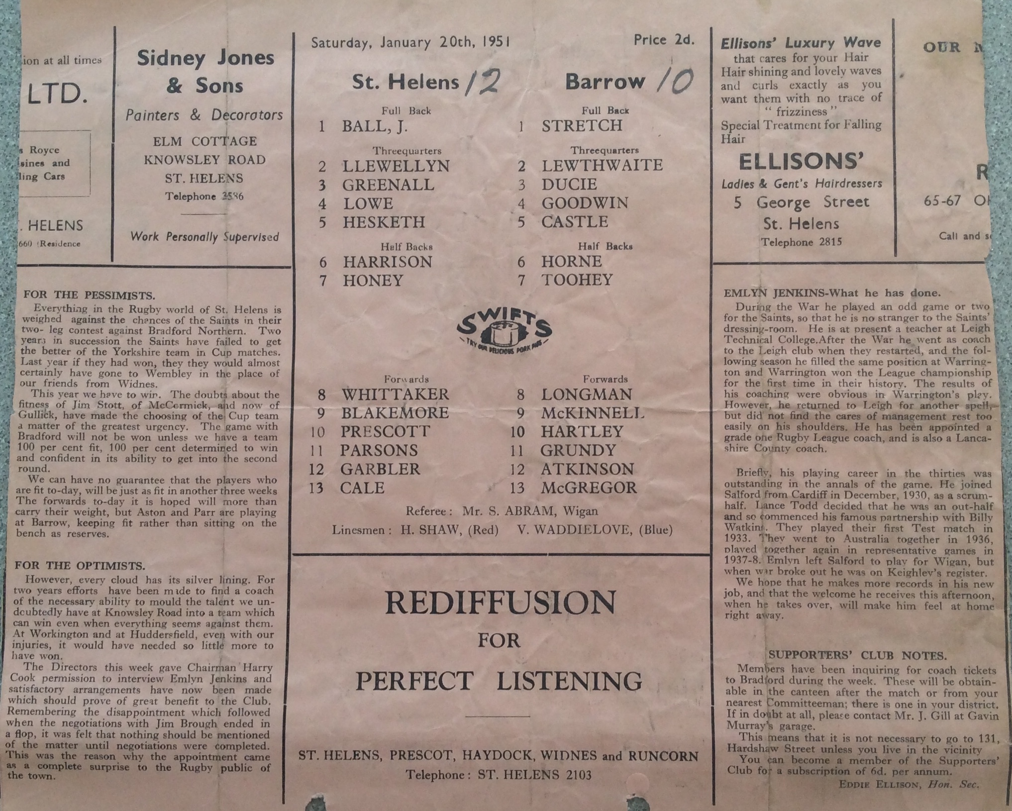 COACH : Emlyn Jenkins![]() (1951-01-20 : 1952-01-12 ) |