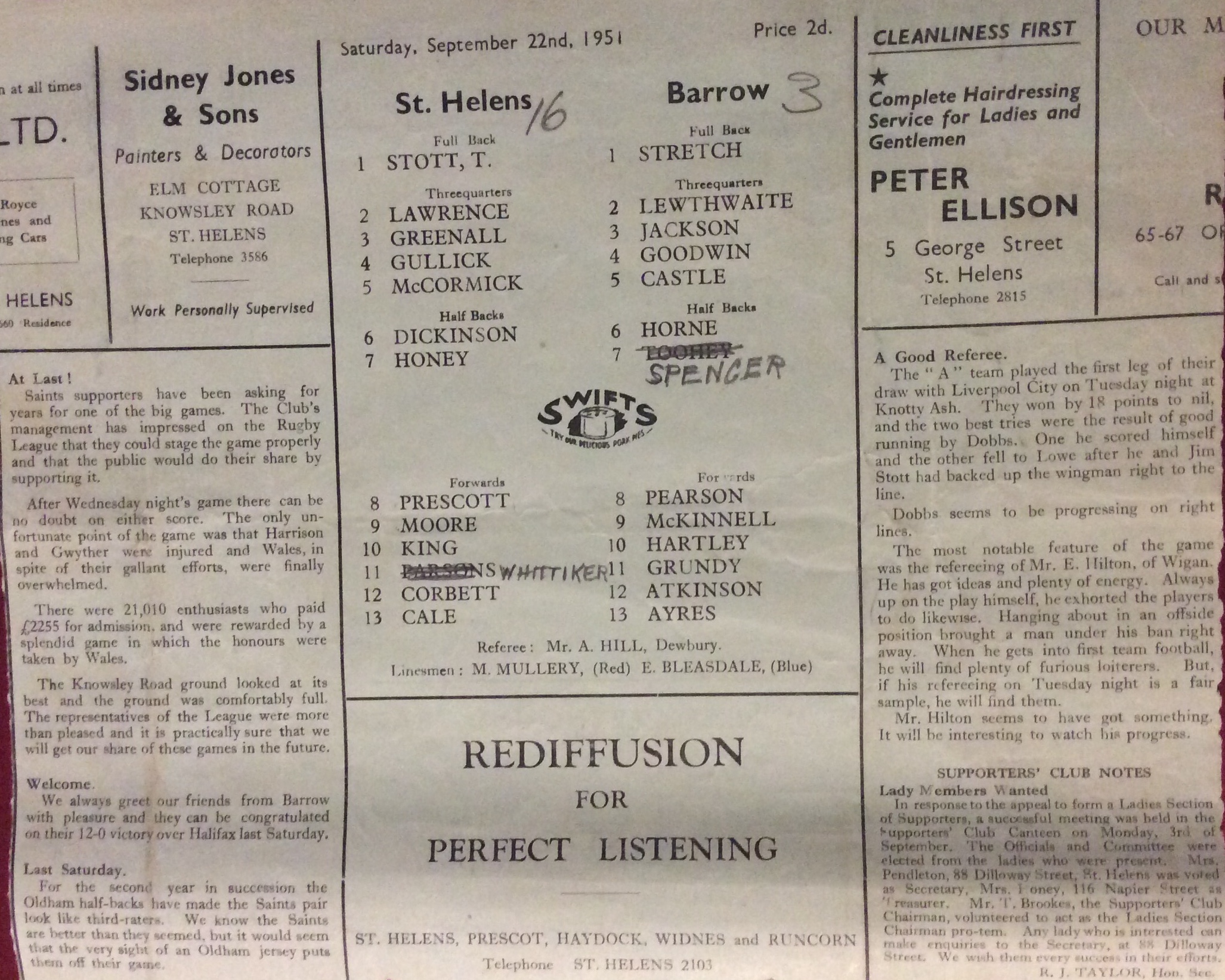 COACH : Emlyn Jenkins![]() (1951-01-20 : 1952-01-12 ) |
