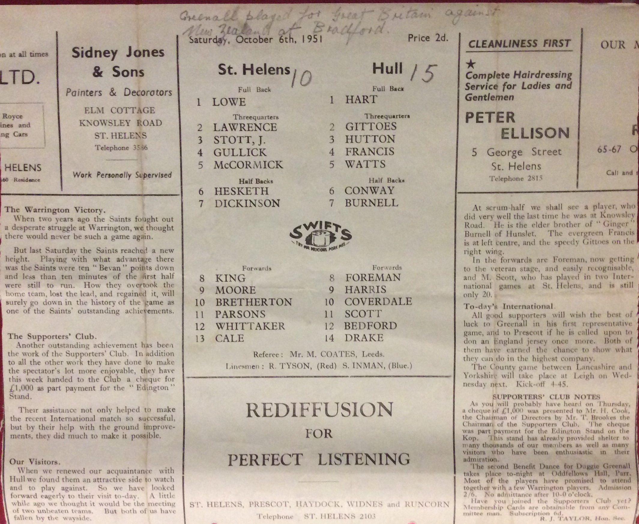 COACH : Emlyn Jenkins![]() (1951-01-20 : 1952-01-12 ) |