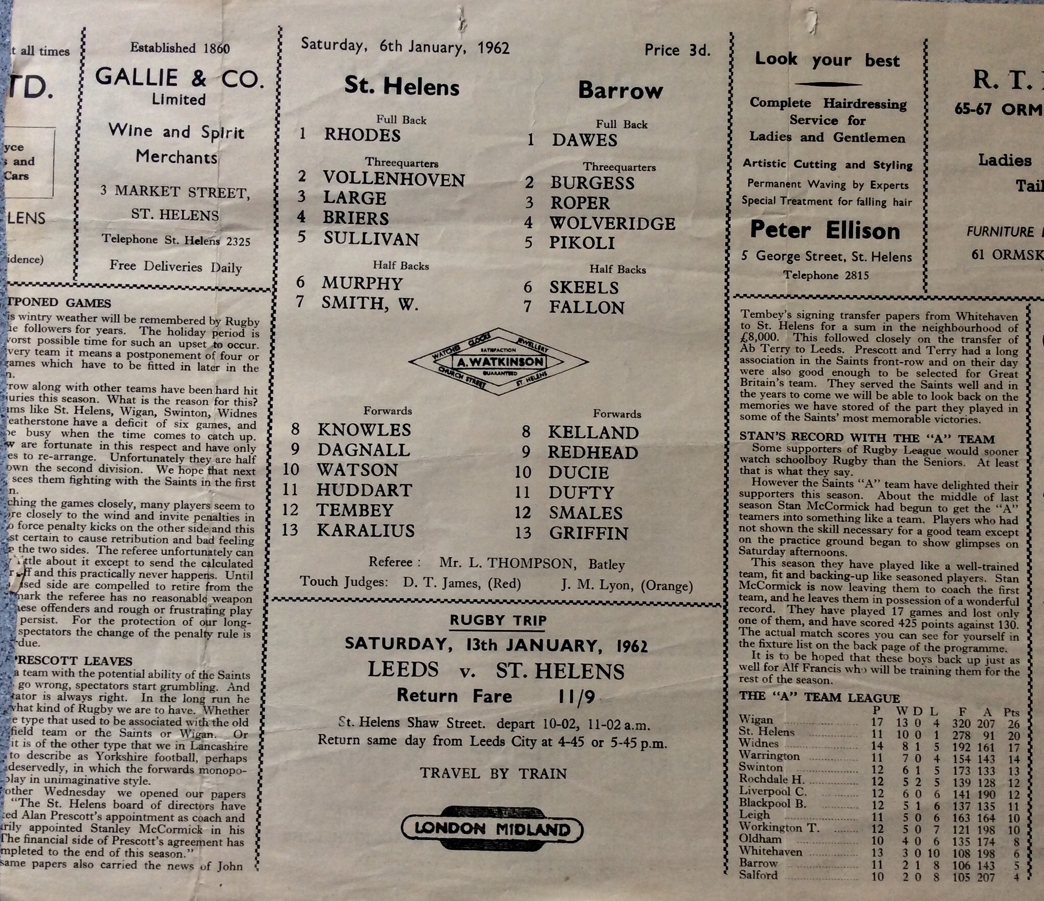 COACH : Alan Prescott![]() (1959-08-01 : 1962-07-31 ) |