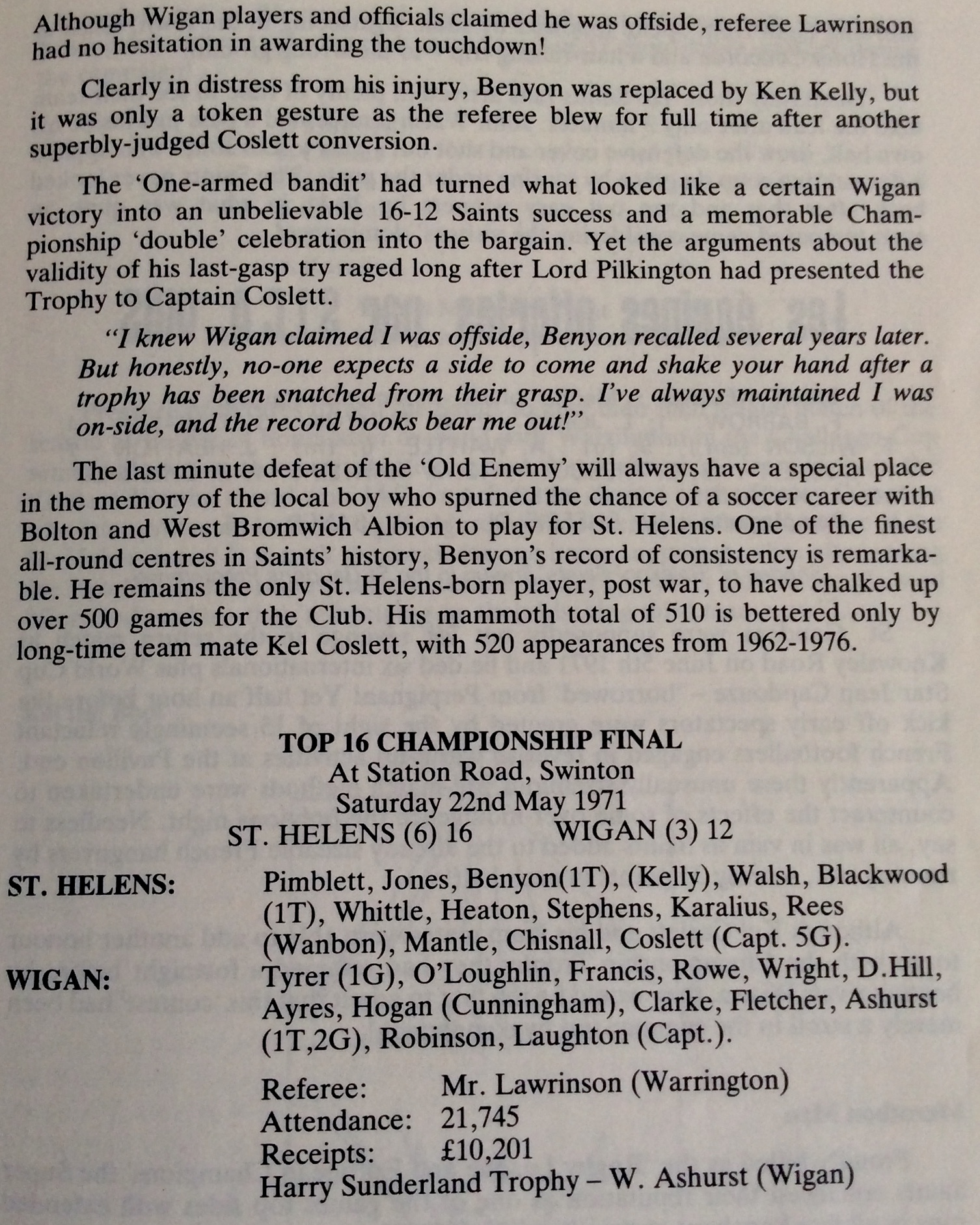 COACH : Jim Challinor![]() (1970-08-01 : 1974-07-31 ) |