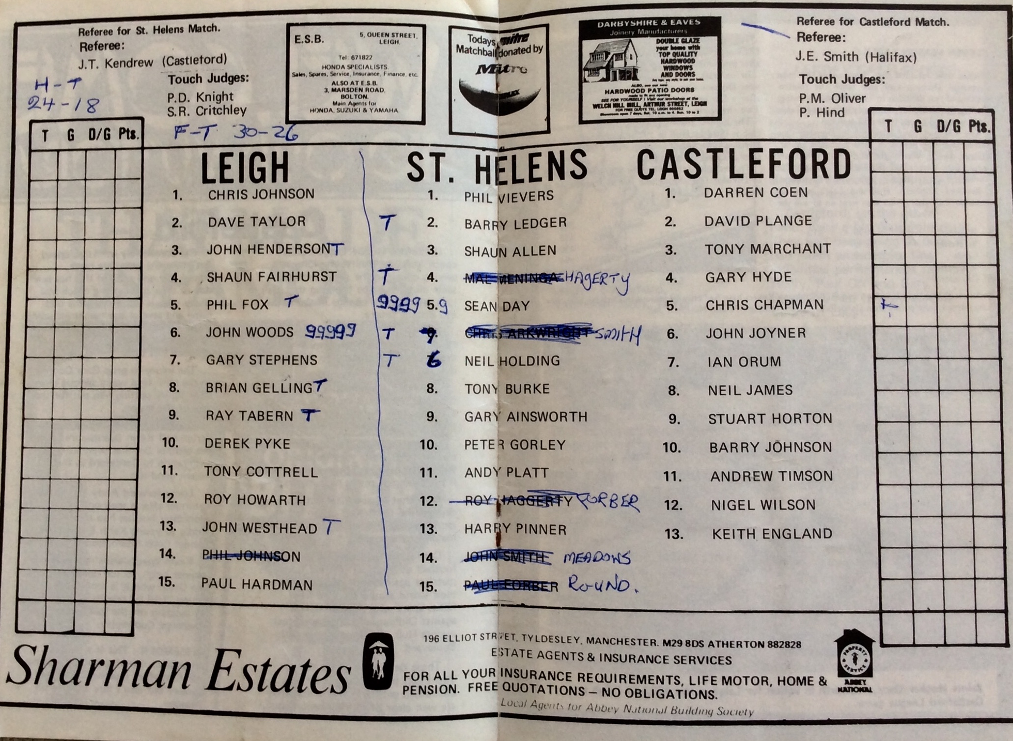 | VENUE | ATTENDANCE | (HT) | ||