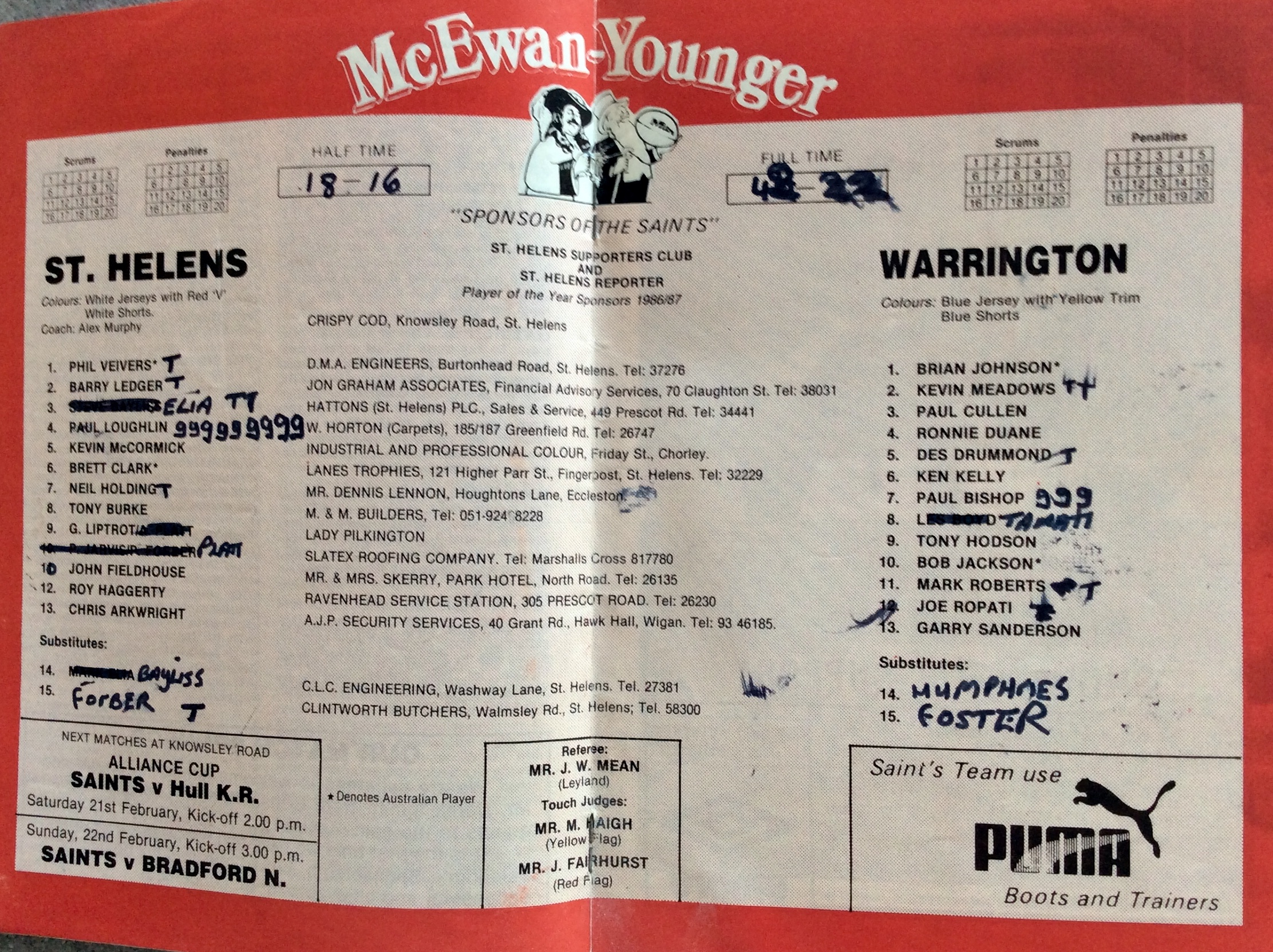 COACH : Alex Murphy![]() (1985-11-01 : 1990-01-31 ) |
