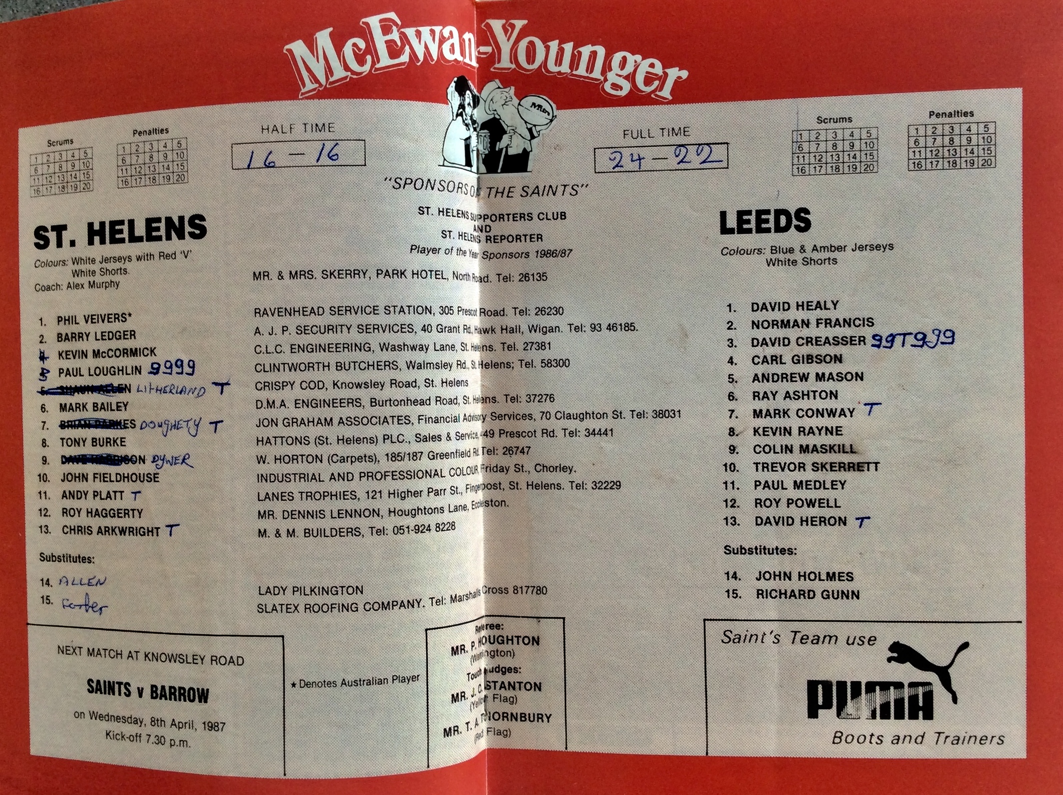 COACH : Alex Murphy![]() (1985-11-01 : 1990-01-31 ) |