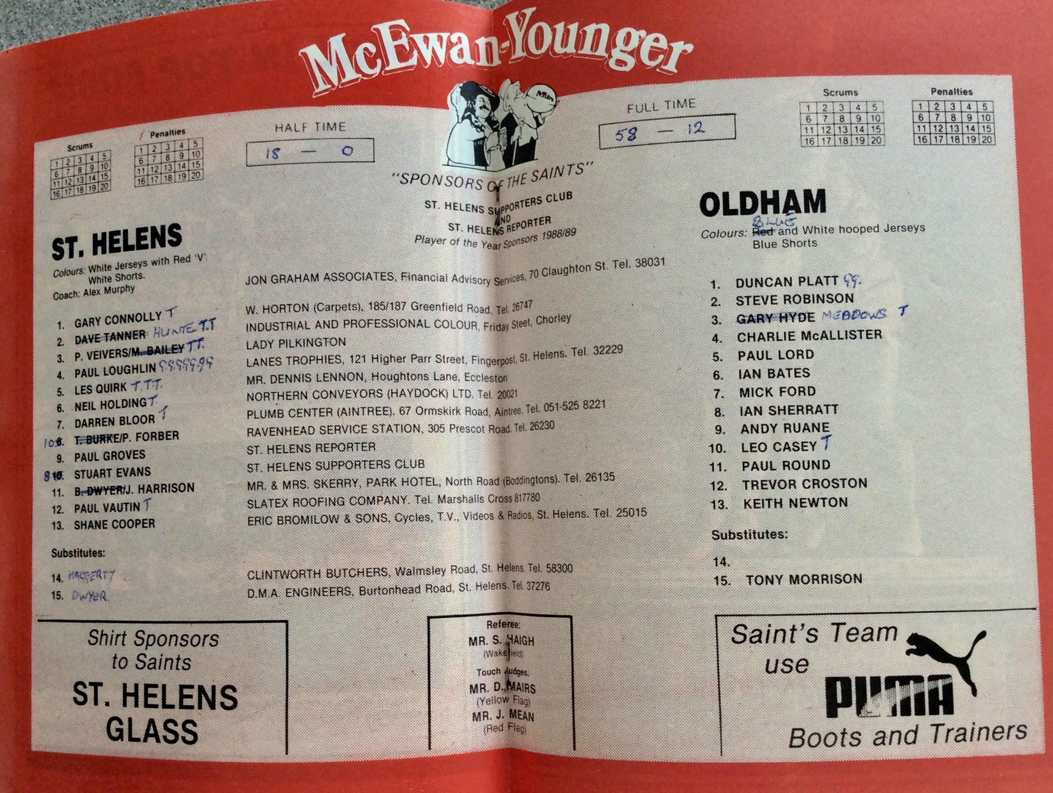 COACH : Alex Murphy![]() (1985-11-01 : 1990-01-31 ) |