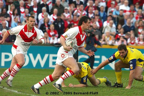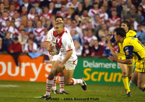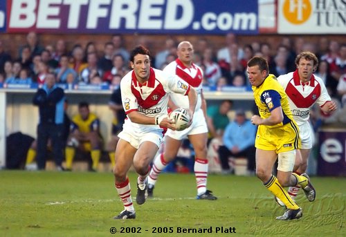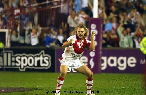 | MATCH NOTES : The three sensational points that Sean Long scored for Sts in the last 90 seconds versus Warrington, didnt just win the match, they also proved to be a significant personal milestone for Sts mercurial half back. Sean Longs penalty goal took his Sts career points total to 1921. That equalled Austin Rhodes career total and Austin had been the third highest points scorer for Sts in the Clubs history. Obviously when Sean added the drop goal, thirty seconds later he overtook Austins total and became the third highest scoring St in his own right. |