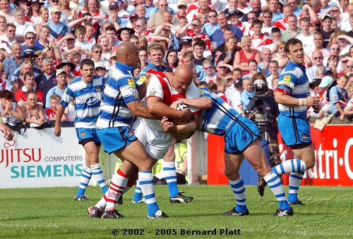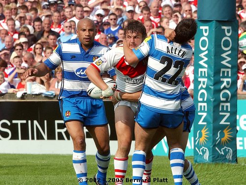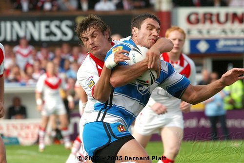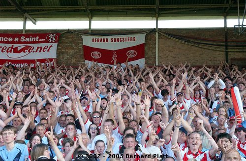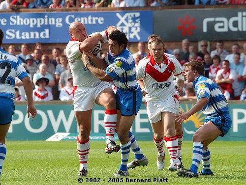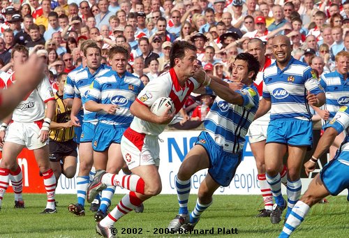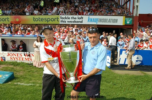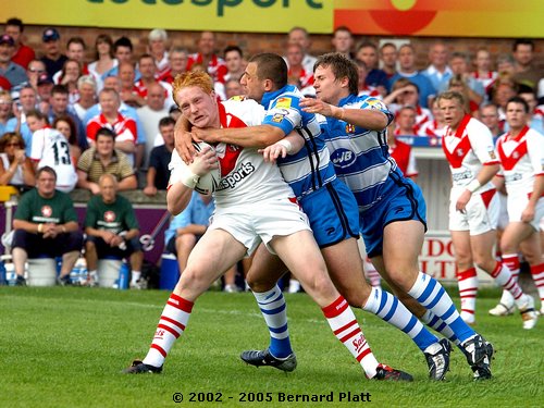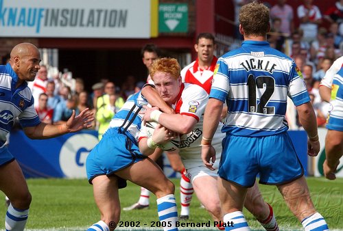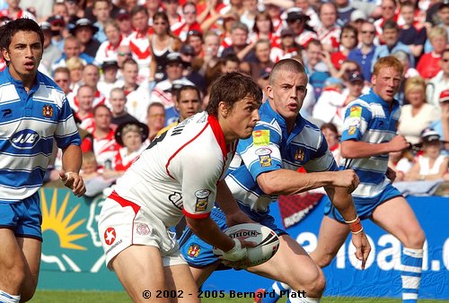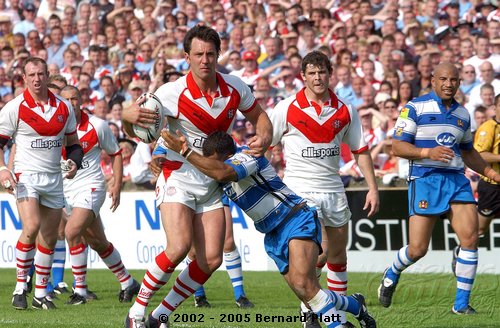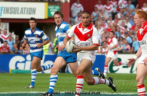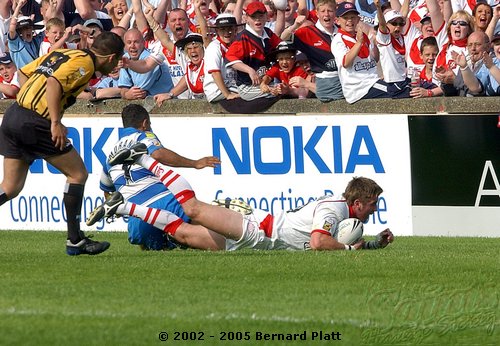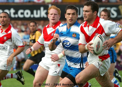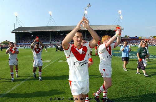 | MATCH NOTES : Saints total of 75 points was the 4th highest in the clubs history. It was also the most points St. Helens had ever scored in a Challenge Cup match. 75-0 was Wigans worst ever defeat. Saints score surpassed Wigans record 12-65 defeat of Saints on 26/5/1997 to record the highest ever score in a Saints v Wigan derby and also over took Saints 54-16 win at the JJB Stadium on 30/9/2000 which had been their highest score v Wigan and their 41-6 & 41-26 home wins on 27/12/1992 and 05/04/1996 which had been their highest ever home scores v Wigan. Mark Edmonson scored a hat trick of tries off the bench and thus became only the third ever Saints sub to cross for 3 tries in a match! |