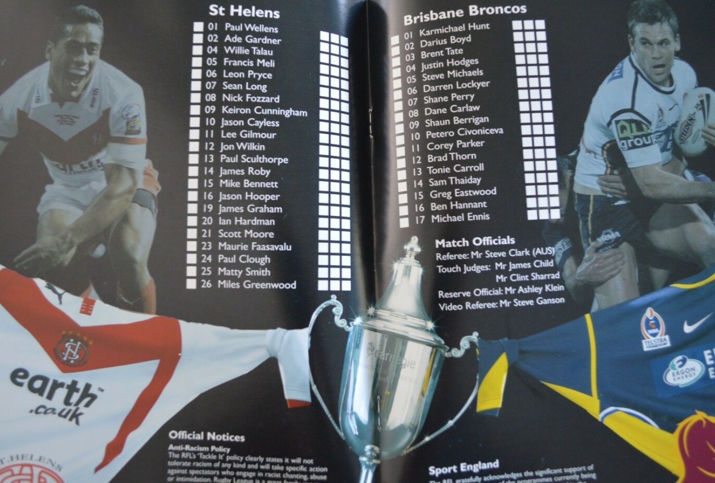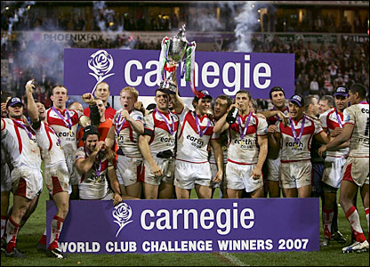 | MATCH NOTES : Match played at the Reebok Stadium, Bolton. Saints win their second World Club Challenge. Paul Sculthorpe returns, from a long term injury, as a substitute and is named as Man of the Match. |