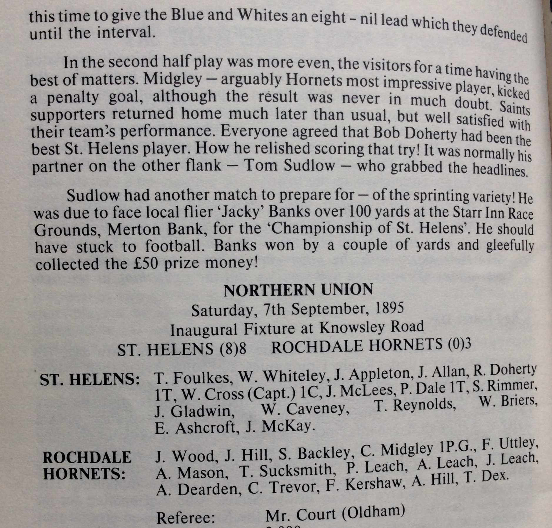 7th Sep 1895 v Rochdale Hornets -L