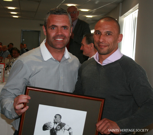 50 Up for Anthony Sullivan![]() 50 Up!Anthony Sullivan was inducted into the Saints’ Players Association Hall of Fame at the 34th Annual Luncheon on Sunday 2nd June. The flying winger, who represented Saints [over 300 appearances and 213 tries], Wales and Great Britain with distinction in his ten-year career was delighted and extremely proud to receive this prestigious award. He becomes the 50th person to enter into the Hall of Fame, which also includes fellow team-mates Bernard Dwyer, Paul Newlove, Chris Joynt and Tommy Martyn, who presented him with his award. The Dinner at Langtree attracted almost 300 people – a record in itself! Anthony Sullivan's Saints Page. |