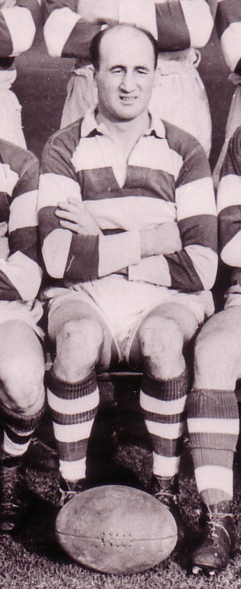 It is sad to report the death of another Saints' full-back, with the passing of Harry Pimblett at the age of 93. Born in Union Street in the Gerards Bridge district of St. Helens in 1920 and one of six children, he originally attended Windle School and left at 14, working at BICC, the Corporation Transport Department and United Glass Bottlers in St. Helens. Sport always loomed large in Harry's early life. Standing 6 feet and weighing 13 stone in his prime, the personable, Harry played junior soccer and rugby for the Star, Merton Bank, Saints' 'A' and had the unique distinction of playing in the very last Saints v Recs match at Knowsley Road prior to answering the call of King and Country in 1940, when he also married Betty Chisnall [of the famous rugby family] at St. Thomas's Church.