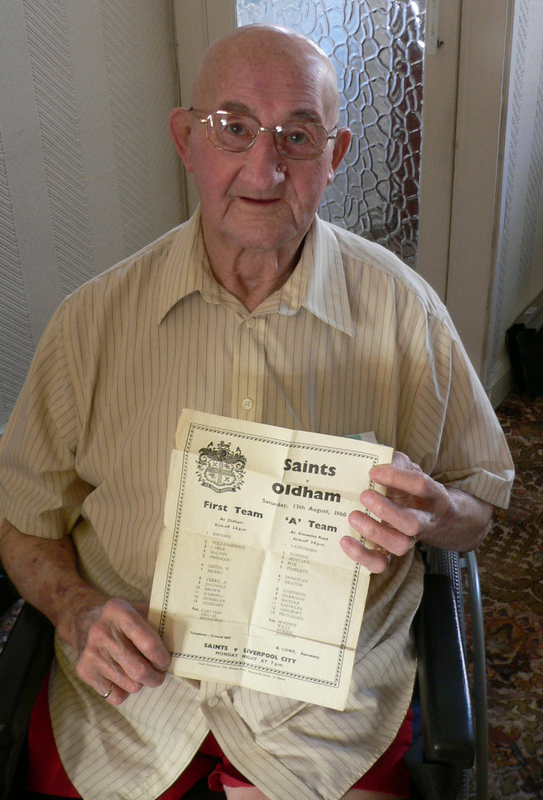 Harry Pimblett dies aged 93. It is sad to report the death of another Saints' full-back, with the passing of Harry Pimblett at the age of 93. Born in Union Street in the Gerards Bridge district of St. Helens in 1920 and one of six children, he originally attended Windle School and left at 14, working at BICC, the Corporation Transport Department and United Glass Bottlers in St. Helens. Sport always loomed large in Harry's early life. Standing 6 feet and weighing 13 stone in his prime, the personable, Harry played junior soccer and rugby for the Star, Merton Bank, Saints' 'A' and had the unique distinction of playing in the very last Saints v Recs match at Knowsley Road prior to answering the call of King and Country in 1940, when he also married Betty Chisnall [of the famous rugby family] at St. Thomas's Church.Harry enlisted in the Welsh Guards on 6th June 1940 and before being sent overseas, he appeared in both codes of rugby by guesting for Wigan and Dewsbury [managed by Eddie Waring], plus Union sides Metropolitan Police, Wasps and Sandown Park. He was even selected for England international duty, versus Wales at Swansea, where he was Man-of-the Match. Harry was taken prisoner at Perugia, in Italy, just at the edge of the famous Monte Cassino and was sent to a POW camp near Dachau. A strong, fast runner, with good hands, Pimblett went on to make 104 appearances for the Knowsley Road team, scoring 22 tries. He ran in a scorching 60-yard touchdown in Saints' memorable 12-7 victory at Central Park in 1947, but things did not work out for him at St. Helens and he was transferred to Belle Vue Rangers shortly afterwards. He remembered that his return to Knowsley Road with the Manchester club was quite an experience when he dropped a goal from the Popular Stand side that helped his team to a 9-0 win. Harry enjoyed his stay with the Manchester club, whose chairman was legendary Tom Spedding and their left winger Saints' future target Stan McCormick. He then hung up his boots, aged 34, when the Belle Vue club folded in 1954. Unfortunately, Harry was affected by a trio of tragedies during his lifetime, which would have tested the resolve of any man. The loss of his only child, Jack was a particularly hard blow to take. A former schoolboy star, he was on Saints� books for a spell and played several First Team matches with the club. Unfortunately, Jack died after sustaining injuries when playing for amateurs Pilkington Recreation in 1971. He was just 27. Harry also lost his wife, Betty in 2003 following 63 years of happy marriage. There were also on-going health problems too, with his right leg amputated in 2005. Given the nature of the man, he remained philosophical, despite such unfortunate circumstances and the great-grandfather lived in Grafton Street, with occasional forays for a wee dram at Windle Labour Club on a Sunday night, where rugby league tales always figured highly. He was a lovely man, with time for everyone and he will be sadly missed by all who knew him. ![]() ![]() |