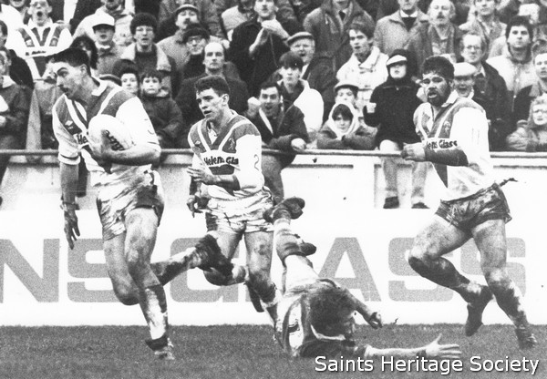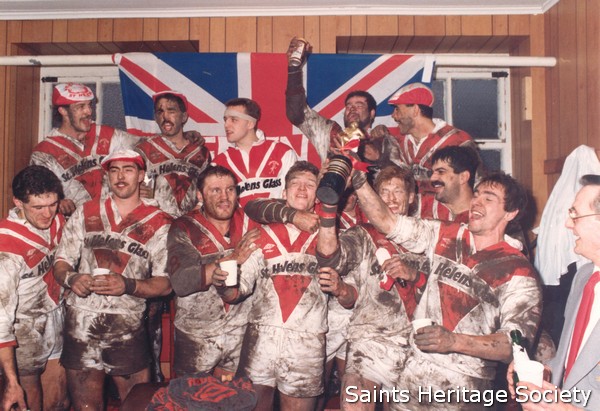 ![]() Dressing room celebrations It was big-spending Leeds - with four Australians in their ranks - who scored first, courtesy of a converted try from stand-off David Creasser. Paul Loughlin booted over a penalty, followed by a surging run ending between the posts to give Saints the lead - despite strong appeals for a double-movement! A Creasser penalty goal kept the Loiners in with a shout and Leeds capitalised after second-rower Peter Souto lost the ball in his own half. Maskill fed Creasser, who set up Australian Superstar Peter Jackson for a classy four-pointer. The conversion gave Leeds an 14-8 advantage, reduced by Holding's crucial 'drop' just before half-time. Saints grasped the nettle after just two minutes of the re-start, when a flowing move out wide involving Platt and Forber saw rangy centre Paul Loughlin cut inside in classic fashion, leaving Basnett and Australian full-back Marty Gurr trailing in his wake en route to the Leeds' posts. He belted over the conversion for good measure, putting St. Helens 15-14 ahead. The Leeds forwards continually drove into the Saints' half as the game went on - but to no avail. It was to be Coach Alex Murphy's finest hour in his spell at Knowsley Road, after a truly epic encounter, in front of a huge national television audience - the perfect advert for the 'Greatest Game! | ||||||||||||||||||||||||||||||||||||||||||||||||||||||||||||||||||||||||||||||||||||||||||||||||||||||||||||||||||||||||||||||