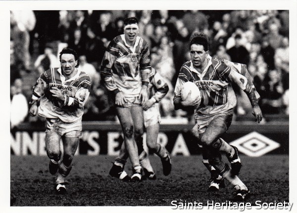 ![]() A Ward Kevin surge Leeds' Carl Gibson charged down Veivers' clearance kick in the centre of the field and dived over at the Scoreboard End, but Gary Connolly replied for the Saints. Goulding squared matters at 8-8 with another drop-goal, but Shane Cooper strolled over for a superb try, to give his side a four point lead at half time. A brilliant Anthony Sullivan try was converted by Bishop: 18-8 to the visitors after 51 minutes. Leeds' prop Molloy ran in an amazing 30-yard try, but Connolly scored once again for the rampant Saints to give them a 12-point cushion. Hunte ran in another four-pointer and in the last few minutes there was another bewildering exhibition of support play. Scrum-half Bishop broke up to half-way....a pass to Ropati...on to hooker Groves steaming up in support and a final lobbed pass to Sullivan who ran in from 15 yards. What a match - and with only three penalties during the 80 minutes for good measure | ||||||||||||||||||||||||||||||||||||||||||||||||||||||||||||||||||||||||||||||||||||||||||||||||||||||||||||||||||||||||||||||