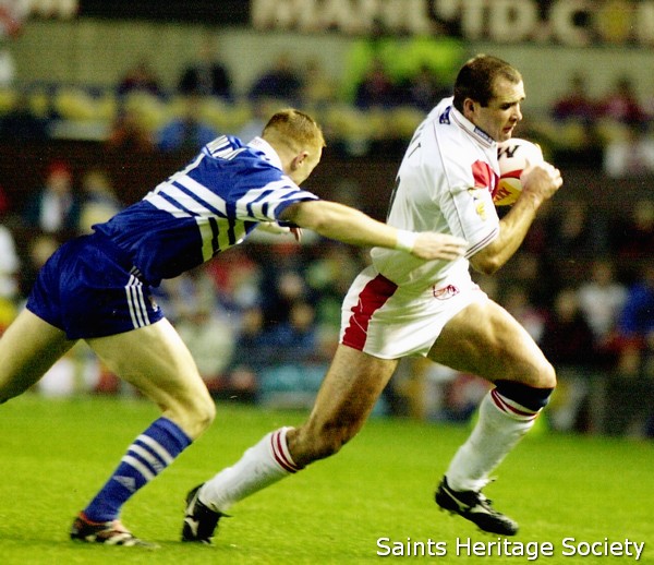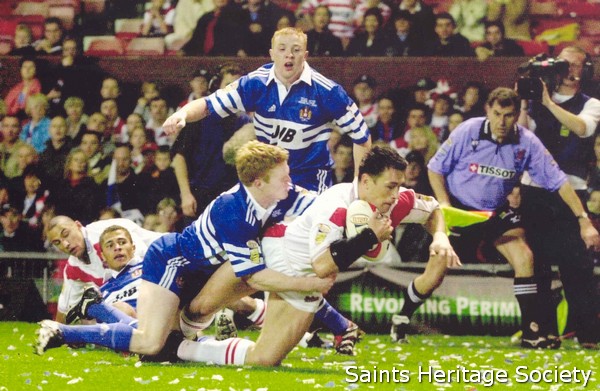 ![]() Chris Joynt try The third Super League Grand Final was a stunning spectacle and, despite the one-sided nature of the previous clash between the two sides was very much in the balance until the last quarter. Saints, without star centre Paul Newlove, were first off the blocks with a well-crafted try by Sean Hoppe after just seven minutes. They led 11-4 at half-time, with a further four-pointer from skipper Chris Joynt, a Sean Long conversion and a Paul Sculthorpe drop-goal. Andy Farrell scored Wigan's try. In a fast, open game the Saints appeared to be cruising at 17-4 when Chris Joynt notched his second try in the 50th minute. Yet on the hour, Wigan had pulled the lead back to a single point, with tries from David Hodgson and Tony Smith and there was a need for stability and consolidation in the St. Helens ranks. A couple of crucial penalties gave the Saints the initiative to score once more, however, courtesy of Fereti Tuilagi, who was playing his last game of rugby league before retirement. Virtually on the hooter, Saints clinched it, when Anthony Sullivan gave the ball to Tim Jonkers, who touched down gleefully to clinch a 29-16 victory and the club's first-ever back-to-back Grand Final success. Saints' skipper Chris Joynt received the Harry Sunderland trophy after a fantastic individual display. | ||||||||||||||||||||||||||||||||||||||||||||||||||||||||||||||||||||||||||||||||||||||||||||||||||||||||||||||||||||||||||||||||||||||||||||