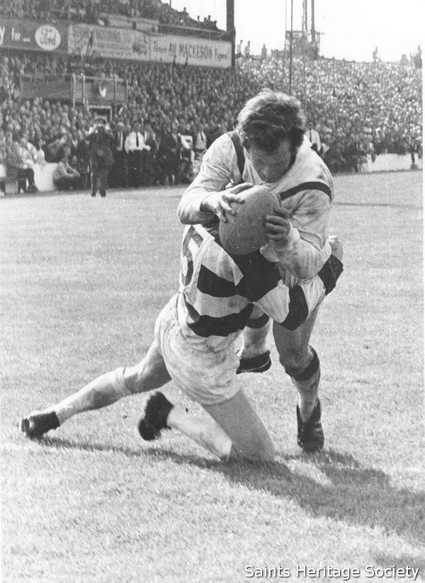 ![]() As a seventeen year old he played in the 1962 Lancashire Cup Final when Saints defeated Swinton by 7 points to 4. In the 1964/5 season he emerged a s the regular left centre to flying springbok Len Killeen. He played in this position in the 1964 Lancashire Cup Final and picked up a second winner`s medal, again the vanquished were a then paranoid Swinton outfit. Billy was an integral member of the side that won four cups in the 1965/6 campaign. In the 1966 Challenge Cup Final demolition of Wigan, Billy received a neat pass and deftly grubbered the ball behind the Riversiders` defence for a flying Killeen to pick up and dive across the line in one movement to score a sensational try. This victory was followed one week later with a resounding performance in the Championship Final against Halifax. Billy`s guile and speed helped destroy the Yorkshiremen by 35 points to 12. His service to Killeen was exquisite and provided the South African with ample scoring opportunities which more often than not were gleefully taken. Billy was a consistent player throughout his career but arguably his finest form was in the late sixties and early 1970s. His game awareness had reached maturity, Billy`s ball skills were their sharpest and he even seemed to have gained an extra yard or two in pace. The 1969/70 season culminated in the 1970 Championship Final 24 points to 12 victory over Leeds. The following campaign was to thrust Billy into the limelight. His tryscoring prowess was at its peak and Billy had developed a party piece with several brilliant interception tries which served to highlight Benyon`s impeccable timing and reading of the game. The ultimate climax occurred for Billy and the Saints at the end of this campaign when Saints were matched against Wigan in the dramatic 1971 Championship Final. When a well-judged follow up to a Walsh drop goal attempt placed him in the right spot to catch the ball and seal the Championship for the Saints. In a landmark season for club and player, Billy ended the season with 22 tries and had gained two Great Britain caps. He was part of the side that carried off the 1971 BBC TV Trophy in the 8 points to 2 Final victory over Rochdale Hornets and a key member of the 1972 Challenge Cup winning side that defeated Leeds by 16 points to 13. He also made a further three starts and one substitute appearance for Great Britain. The 1970s saw Billy`s mantlepiece full to overflowing with Championship, Challenge Cup, Premiership and BBC TV Trophy winning medals. Following the transfer of Kel Coslett to Rochdale Hornets in the summer of 1976, Billy was made club captain. In his last season Captain Billy led the team a second successive Premiership Final against his next club Warrington. That proved to be the last silverware that the club would win for seven years. Billy Benyon was a great talisman for the club during his career. In all his winning medal total included 3 Challenge Cups, 5 League Championships, 2 Premierships, 4 Lancashire Cups, 4 Lancashire Leagues and 2 BBC TV Trophy competitions. Whilst at the Saints Billy also earned 13 caps for Lancashire scoring four tries for the `Red Rose` county Billy took over the reins as coach of the Saints in the summer of 1982. He brought on a talented bunch of youngsters to form the nucleus of the next trophy winning squad. Under his guidance and the inspiration of a certain Mal Meninga, Saints picked up the 1984 Lancashire Cup and defeated Hull KR in the 1985 Premiership Final. | ||||||||||||||||||||||