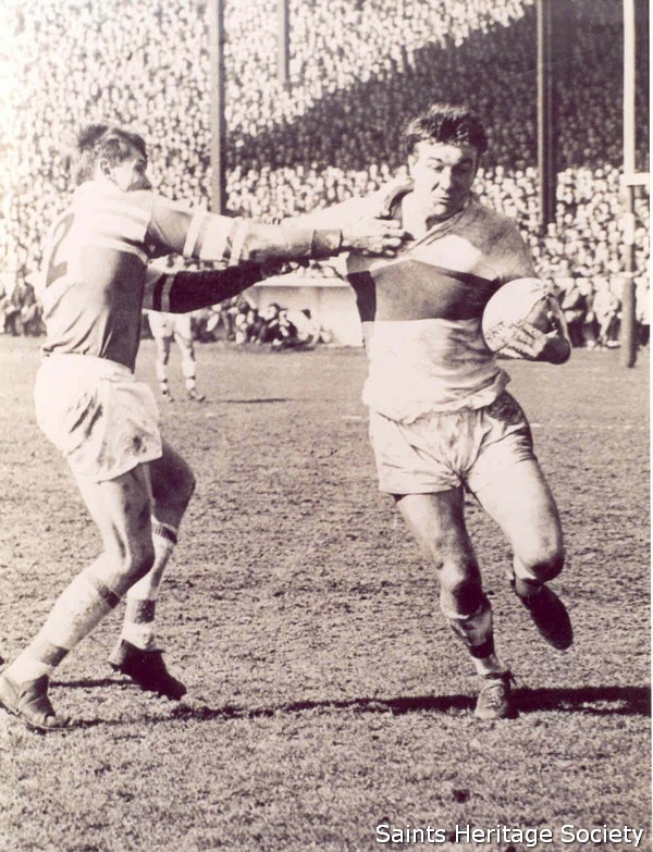 ![]() Dick played 12 times for Great Britain in his time with the Saints. He also won seven Cumberland caps and one England cap. Huddart played a vital part in laying the foundations for many a Saints victory including the sensational 1959 Championship Final win by 44 points to 22 over a great Hunslet side. Dick scored a rip-roaring try in typical fashion as he raced through the Hunslet defence from 30 yards out. Dick also won three Lancashire Cup winners medal when the Saints defeated Swinton in three successive years from 1960. In the 1961 Challenge Cup Final Dick was heavily involved in the most memorable Wembley final of all time for Saints and Wigan fans. In the first half his burst through the Wigan defence set up a try for Alex Murphy. His relentless runs kept Wigan on the back-foot until Large and Vollenhoven sealed the game with that momentous try. His performance that day earned him the Lance Todd Trophy that day. The 1962 Australian Tour probably saw Dick Huddart at the height of his prowess. Feasting on the hard grounds he proved a perfect foil to that hardest of all men, Brian Edgar, as he continuously tortured the Aussie defences with powerful hand-offs and rapier like bursts. He played a major part in retaining the Ashes and was glorified by the Sydney crowds in particular. In 1964 after five and a half years at the Club in which he had won every honour in the game. Dick Huddart played 209 matches for the club and scored 76 tries. Saints sold Huddart to the Australian St George club where Dick walked into the most successful club side ever. In 1966 he helped St George to another Grand Final win and so became one of a handful of Englishmen to capture that prestigious medal. | ||||||||||||||||||||||