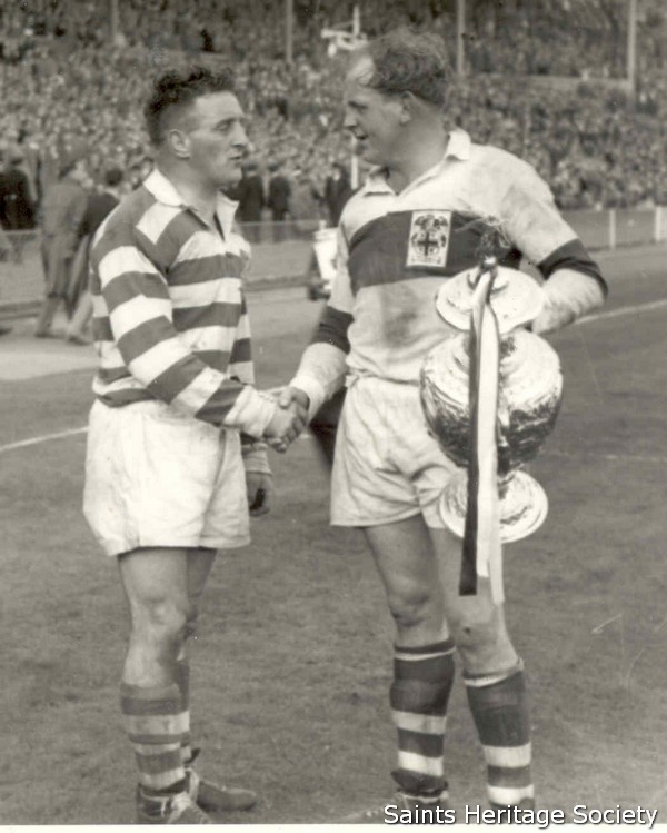 ![]() Alan Prescott was an international rugby league icon, who gained the utmost respect from his on-field deeds and inspirational captaincy. In 1956, Alan was at the pinnacle of his career as captain of his club, county and also his country. The Challenge Cup Final was a Roses Battle royal between St.Helens and Halifax. Just before the final whistle, Prescott took a gem of a pass from loose forward Vince Karalius to plunge over for a memorable try. Alan became the first Saints’ captain to lift the trophy and was awarded the Lance Todd Trophy into the bargain! Born in Widnes in 1926, Alan showed terrific mobility, good hands and was ruthlessly efficient in the tackle. Alan made his international debut against New Zealand in the series-clinching 20-19 victory at Swinton in the Second Test in November 1951 and was a permanent fixture in the British team for the next eight years. The arrival of Coach Jim Sullivan galvanised his career at club level, as the Saints went on to lift the Championship in 1952/53 and the Lancashire Cup against Wigan the following season. Prescott skippered the side to their second title success in 1959, after a magnificent spectacle of open football in the clash with Hunslet at a packed Odsal Stadium. Yet the game for which Alan Prescott is remembered above all is the Second Test in Brisbane in July1958, when an injury-ravaged Great Britain side overcame Australia 25-18 and kept the Ashes series alive. Prescott will always be remembered as the Captain who stayed on the field despite breaking his arm in the fourth minute. The injury signalled the end of Alan’s remarkable 28 Test match career, including two Australian Tours (1954 and 1958) and one World Cup campaign (1957). His heroic efforts at Brisbane paved the way for a record-breaking 40-17 success for the Lions in the Third Test decider in Sydney. At the end of the match, the team paid a fitting tribute to Prescott’s courage by carrying their injured skipper round the ground with the Ashes trophy. | ||||||||||||||||||||||