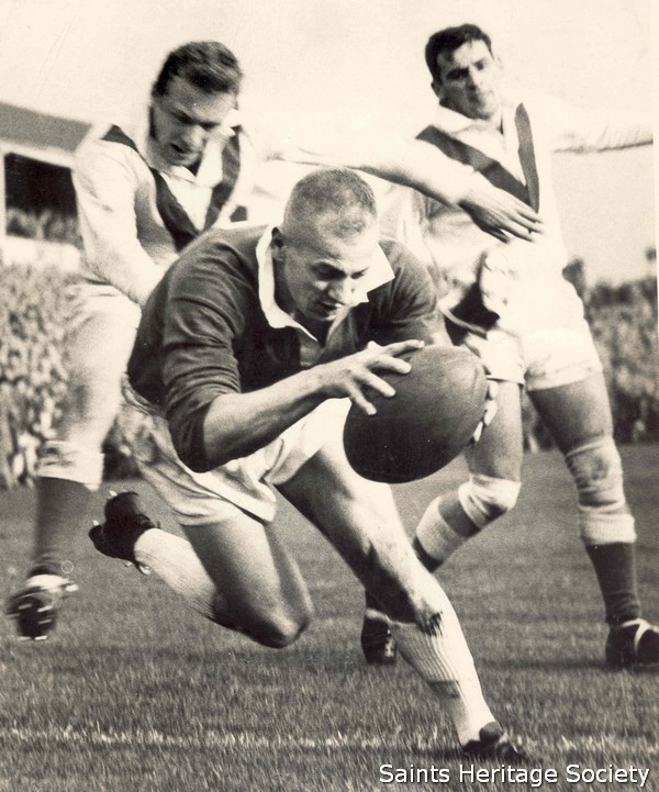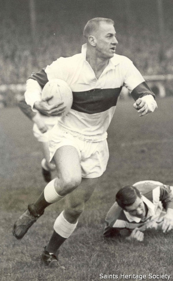 ![]() Tommy Vol was truly a phenomenon, with 392 tries in 408 appearances. He was the hottest winger in Rugby Union in the mid fifties following his thrilling performances for the Springboks against the touring British Lions. His signing was a top-secret affair from under the noses of the Rugby Union authorities and under intense competition from Wigan. No supporter could have really foreseen what an effect this fellow would have on the team and the town! A blond, crew-cutted figure who possessed terrific pace, evasive skills and athletic ability, he was also extremely strong for his size. He could conjure up tries from the most unlikely scenarios, tip-toeing down the touchline and finishing with aplomb. Tom was also a superb defensive wingman, rushing over to the other flank to pull off many a try-saving tackle. Within weeks of his arrival he had become an instant hero, home and away fans piling through the turnstiles to witness his speed and finesse. Those who witnessed his incredible three-try performance against Hunslet in the 1959 Championship Final at Odsal could scarcely believe what they were seeing. Tom notched up his hat-trick despite the pain of a torn hamstring. His most famous touchdown involved superb interplay with another fine threequarter, Ken Large, at Wembley in the 1961 Challenge Cup Final against Wigan. He played in two Wembley finals, both against the Old Enemy, with Saints lifting the coveted trophy each time. In addition Voll collected every club honour with medals for Championship, Lancashire Cup and Lancashire League successes. Back in 1957, the `Vollenhoven Effect` was immediate, with Tom scoring on his He was the obvious choice to front the club`s Centenary celebrations in 1990 and spent almost three hours the day before signing up to five hundred autographs at the Saints` Exhibition at the Museum. Fans queued around the block to meet him. You were left in no doubt, some twenty two years after he had last put on a Saints` jersey, what he will always mean to the people of St. Helens - a genuine superstar! | ||||||||||||||||||||||